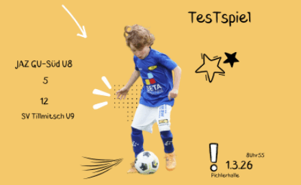 JAZ GU – Süd – SV Tillmitsch 5:12(2:3/3:1/0:4/0:4) Kader: Cejvan, Pogacnik, Pinnitsch, Haas, S. Stahl, A. Stahl, Katzbauer Tore: 2x A. Stahl, Haas, Pogacnik, Cejvan Bei unserem vorletzten Auftritt in der Halle diese Saison hielten wir gegen das sehr gute Team aus...